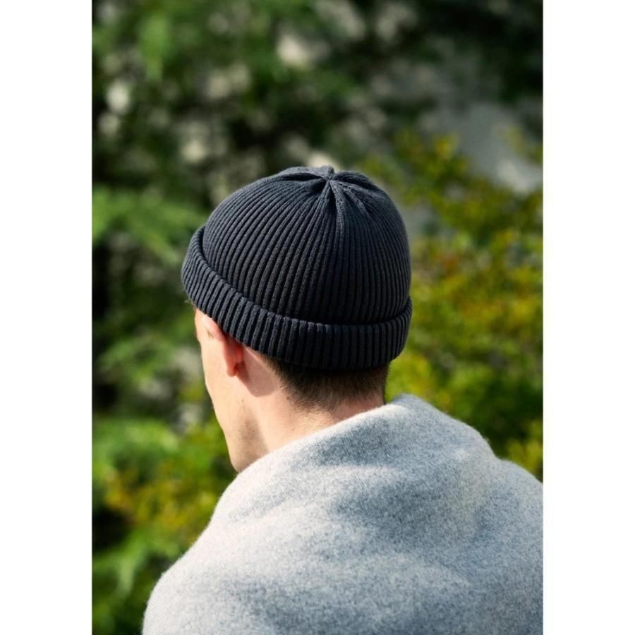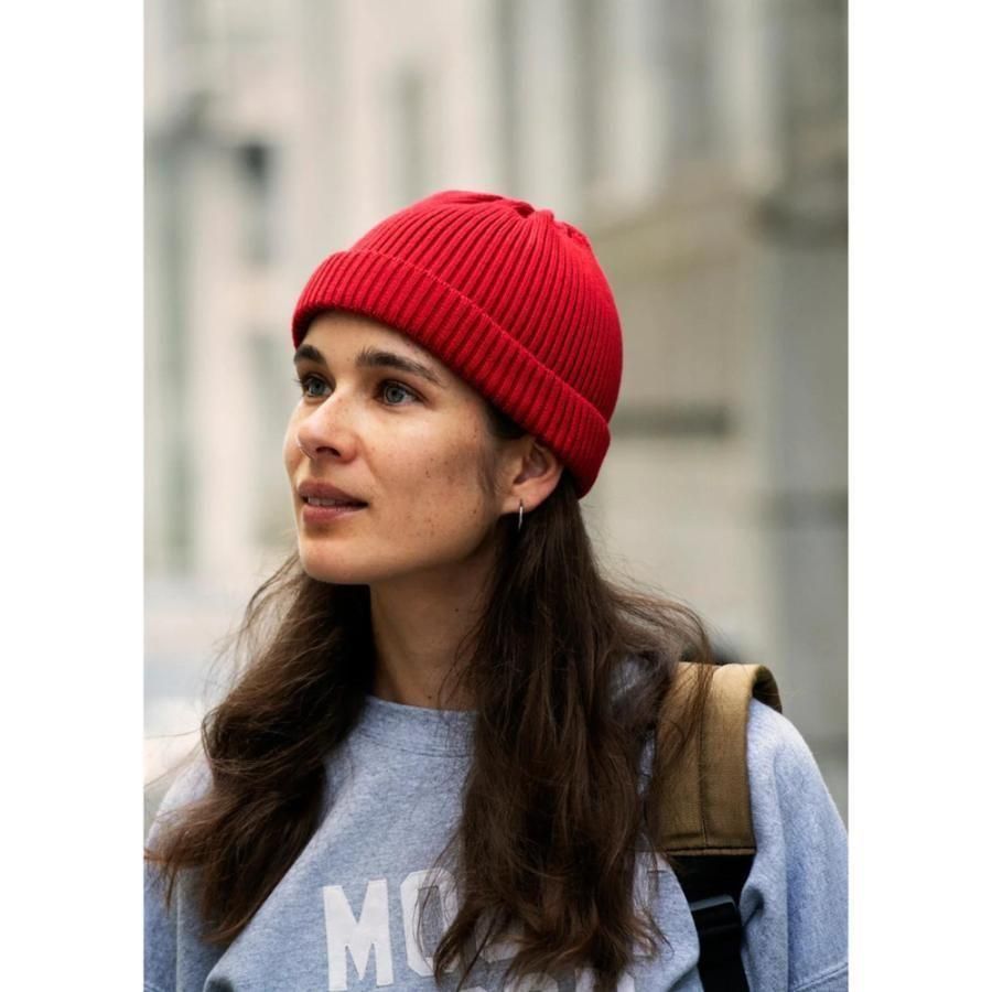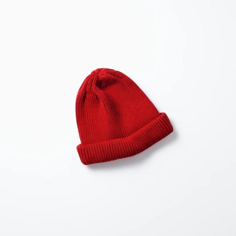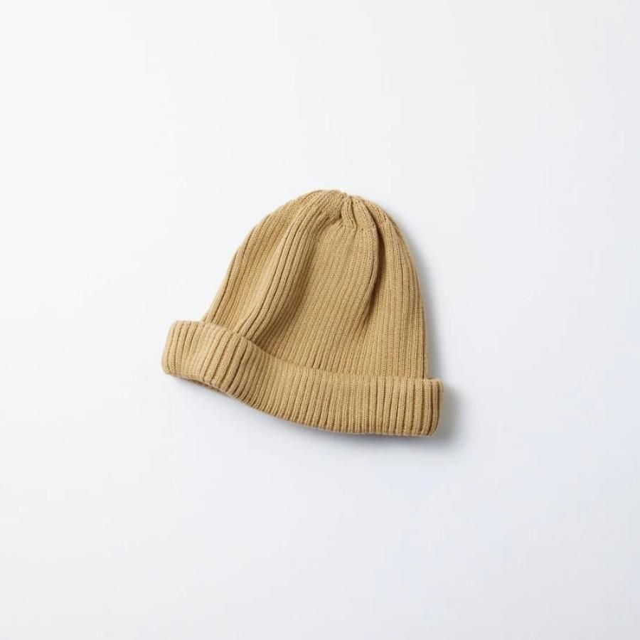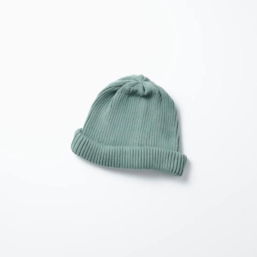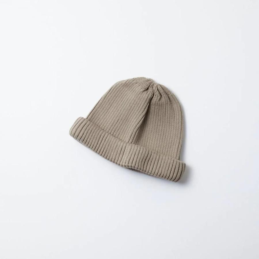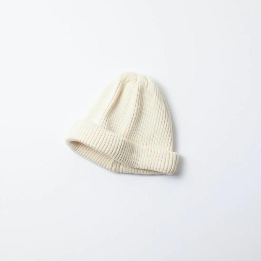 耳が隠れない浅めの丈が特徴的なオーガニックコットン素材のビーニー。